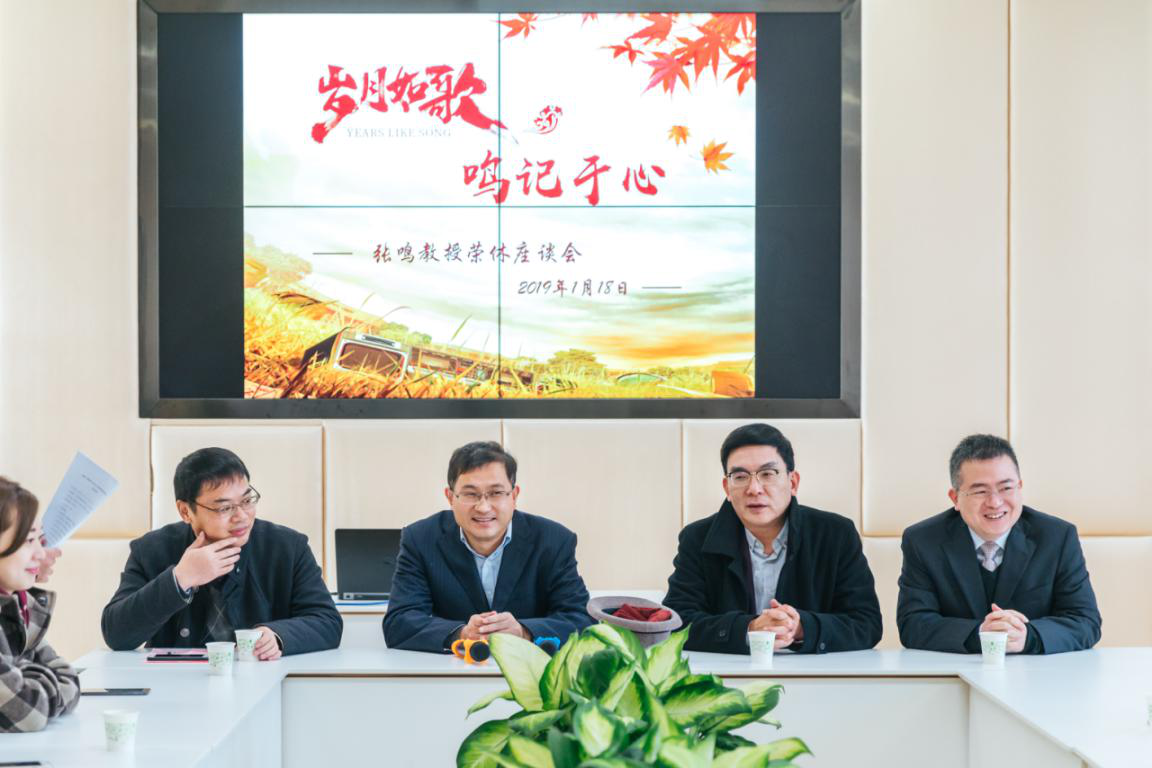 接着,学院教师代表送祝福。陈晓东、储一昀、钱逢胜、刘浩、王悦、文东华、朱凯、黄莎、唐松等老师先后发言。各位老师在回忆自己与张鸣老师相处的点滴往事的同时,也感谢张老师在学习、工作中给予自己的帮助。