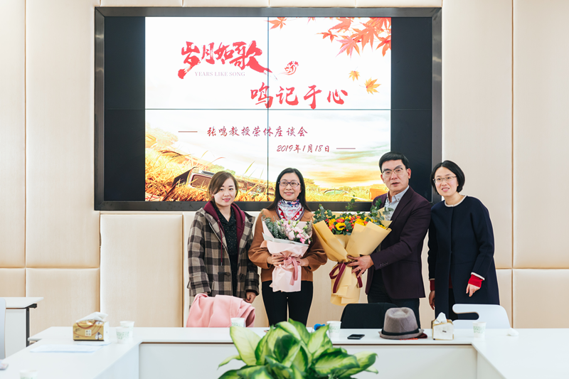李增泉、靳庆鲁、周国良分别作为校院领导代表致辞,感谢张鸣教授数十年如一日在教学岗位上的辛勤耕耘和无私奉献。并表示,张鸣老师是一个富有情调,有温度有情怀的好老师,在教学中善于鼓励学生、授课精彩幽默。在担任副院长期间,为学院的研究生教学、科研方面做出了巨大的贡献。学院今天取得每一个成就与老一辈上财人的艰苦奋斗密不可分,希望张老师在享受人生新生活的同时,能够一如既往的关心和支持学院的发展,为学科建设建言献策。同时,号召大家学习张老师乐观、开放、豁达、艺术的人生态度,在工作中将前辈的精神发扬光大。最后祝福张鸣老师退休后的生活更加精彩。